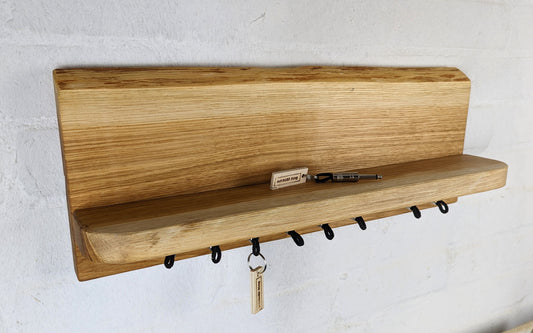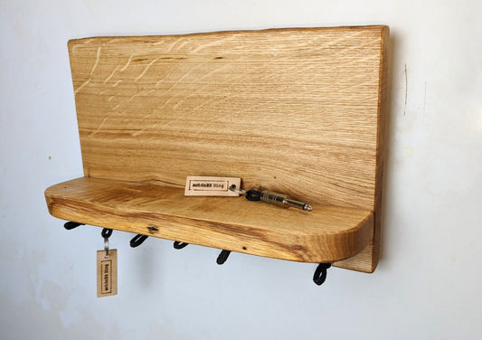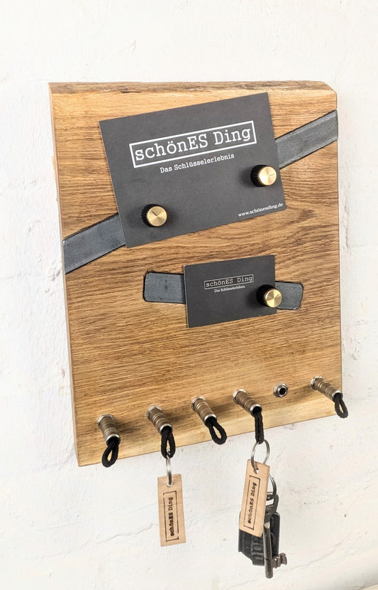 "Einmal mit alles" - Schlüsselbrett und Garderobe aus Eiche mit Klinkensteckern