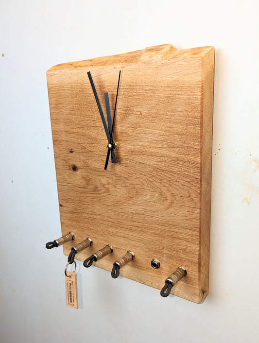 Clock-Board 6er - Uhr und Schlüsselbrett aus Eiche mit Klinkensteckern
