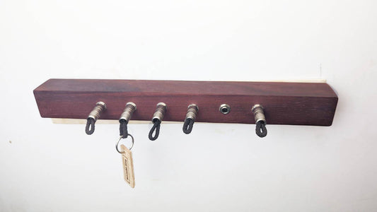 Red one - Handmade Schlüsselbrett aus Edelholz mit Klinkensteckern