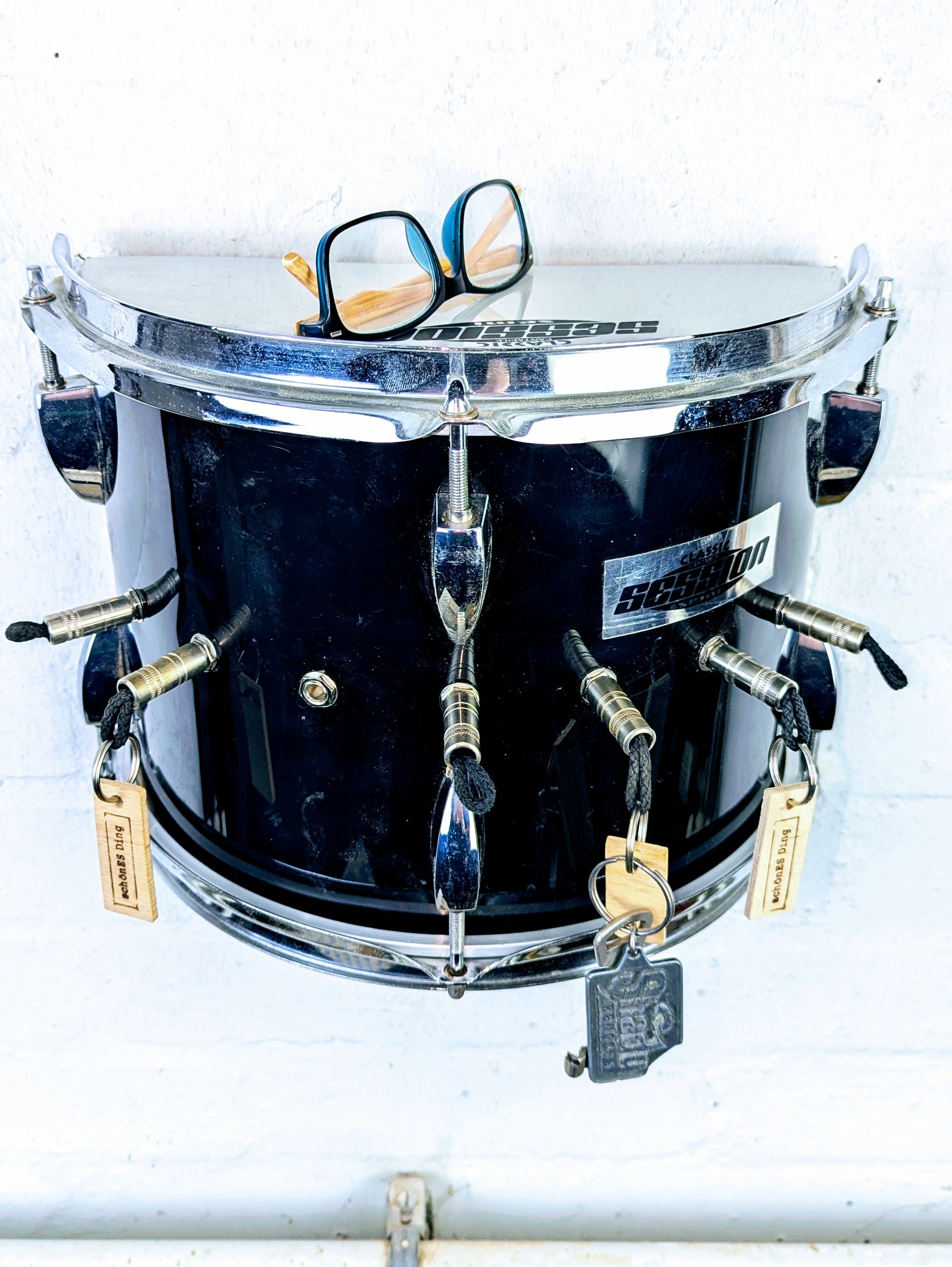 Tom-Board - Schlüsselbrett aus einer Schlagzeug Tom mit Klinkensteckern