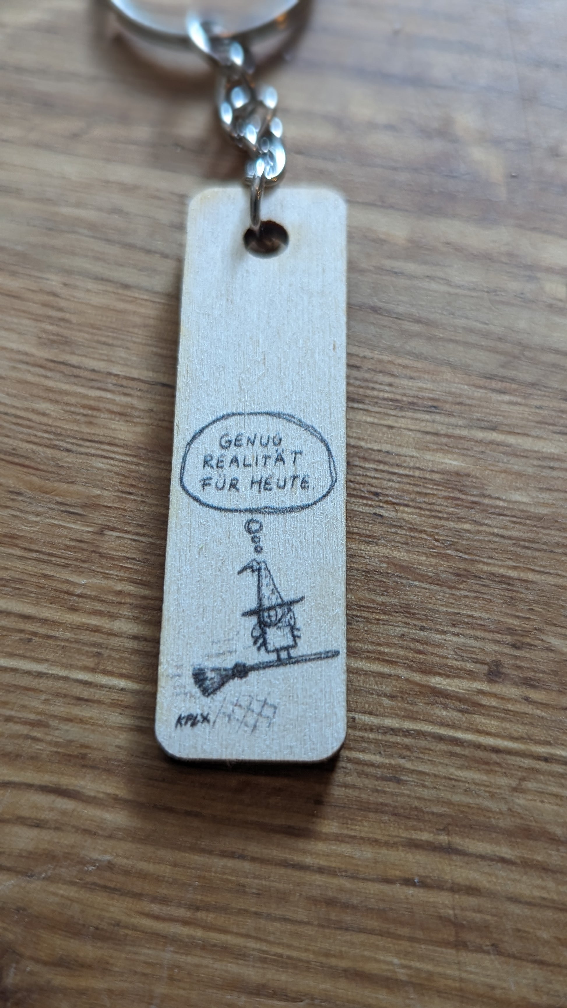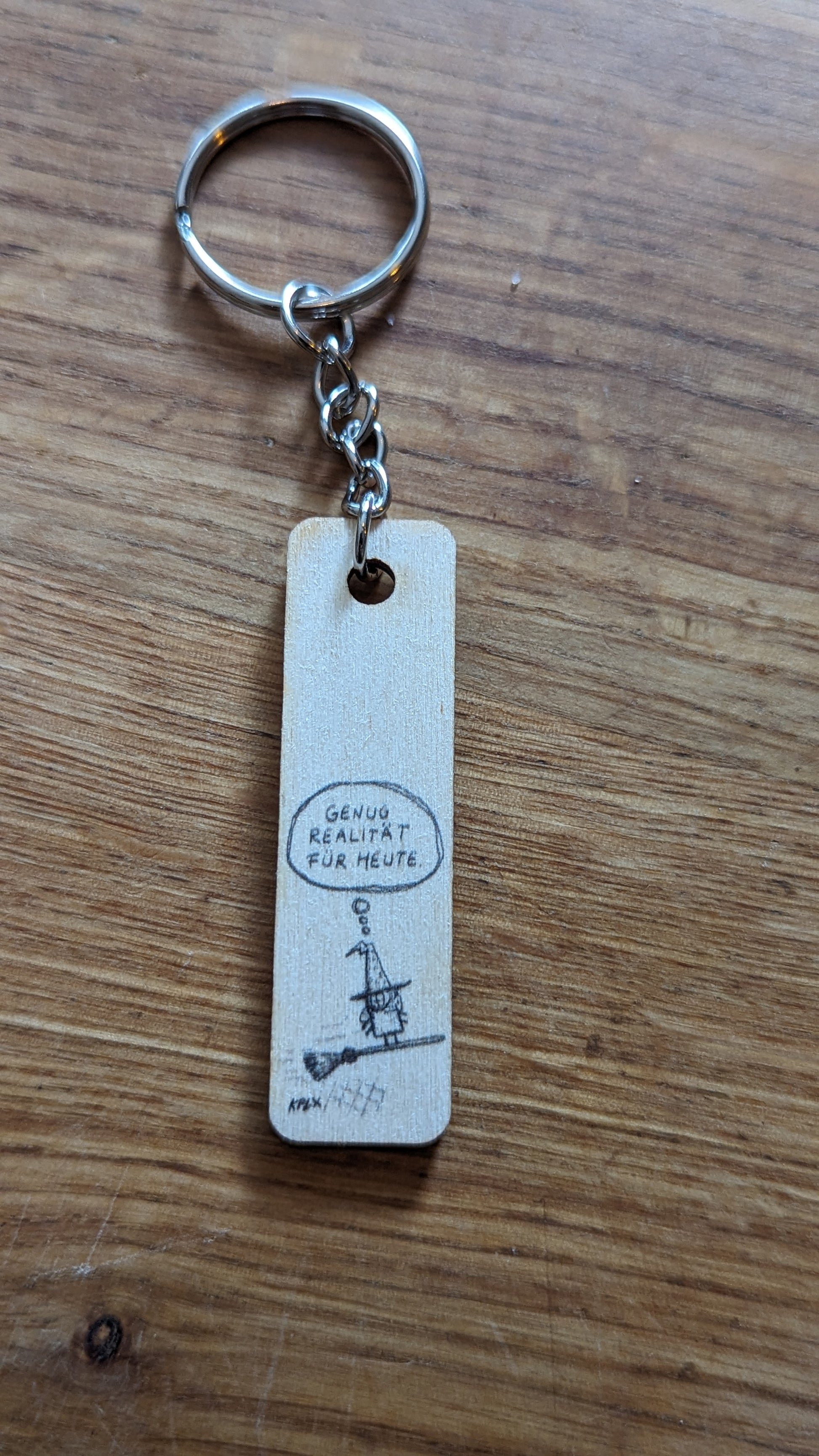 Der Anhänger ist aus Multiplex. Ist also Stabil aber nicht unkaputtbar. Eignet sich daher nicht zu öffnen einer Bierflasche. Ich sag ja nur.