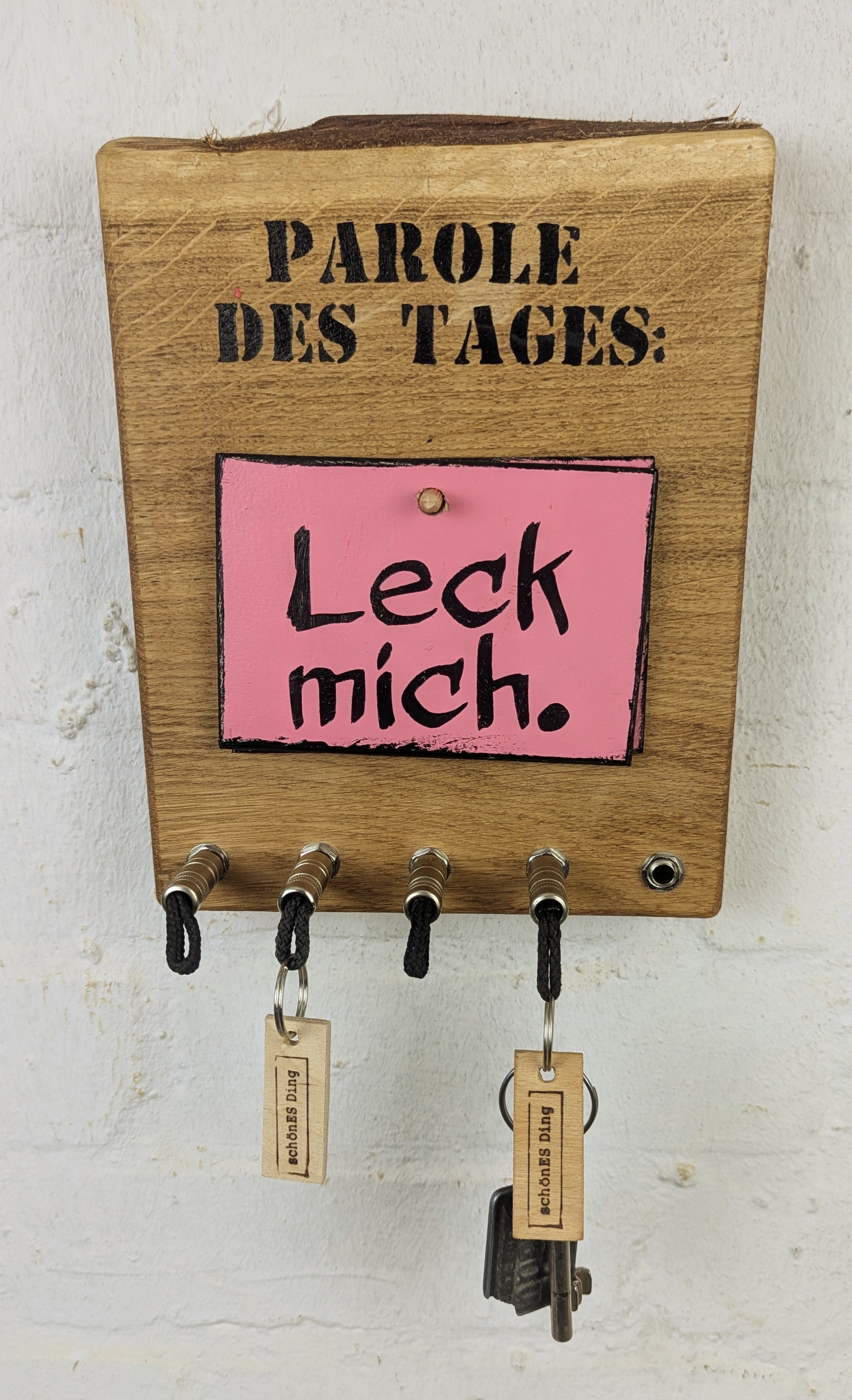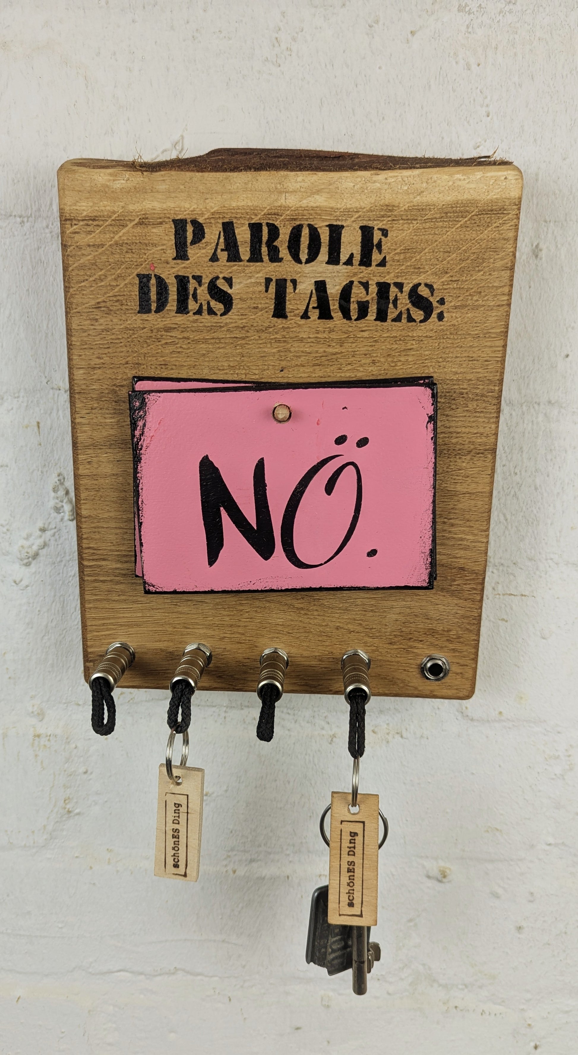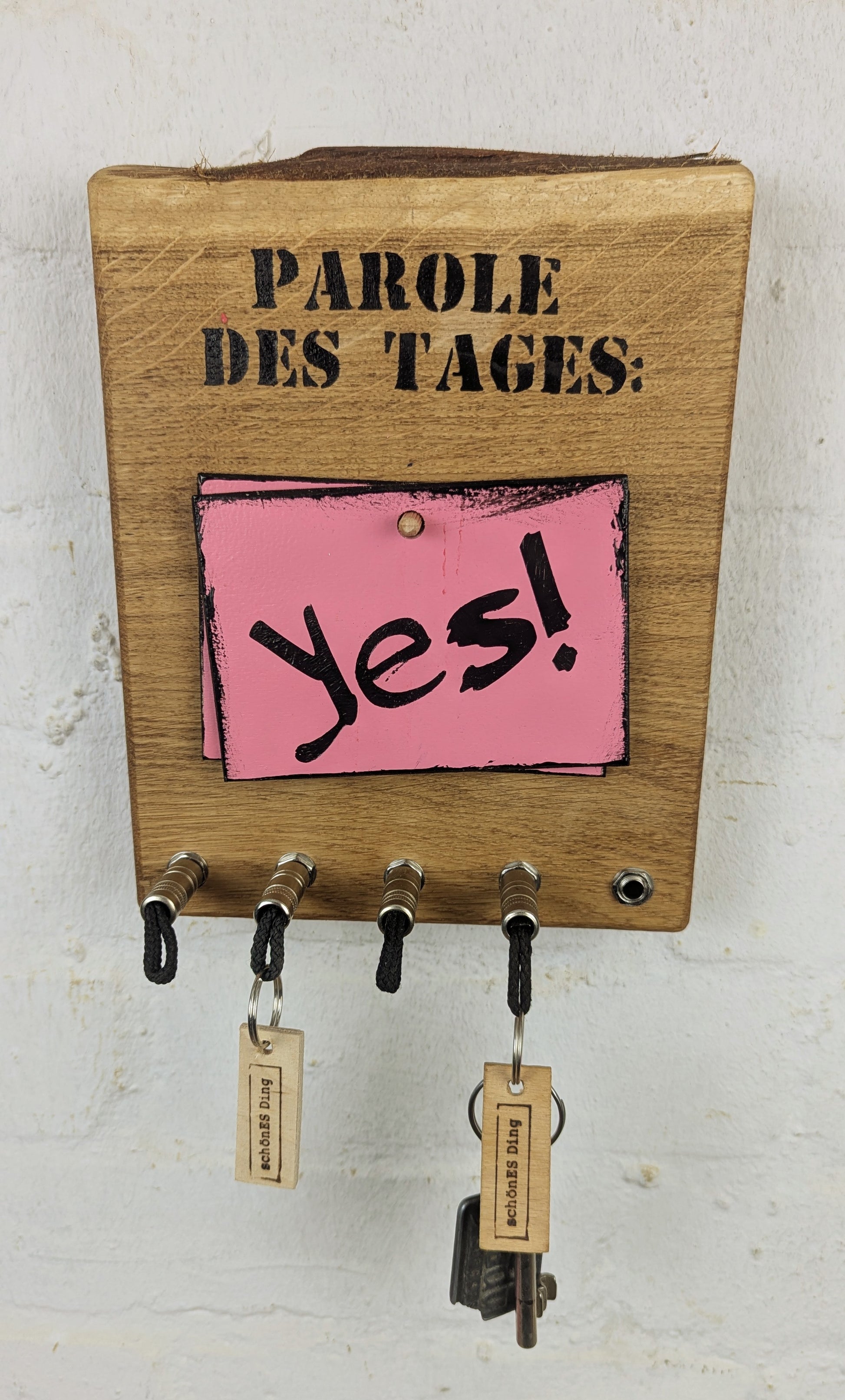 Parole des Tages - Schlüsselbrett aus Eiche mit Klinkensteckern